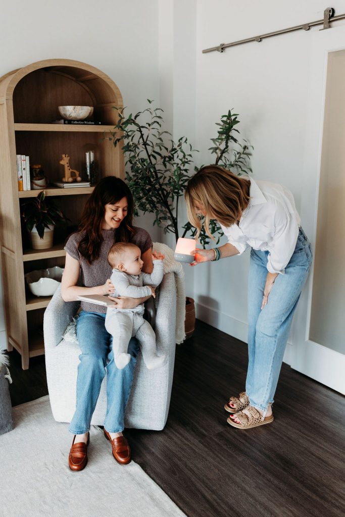 You may think “my child can’t tell time” and sure that may be true for itty bitty babes, but toddlers are smarter than we think! If you haven’t yet started using a toddler clock then this is a great time to do so. I typically find that babies starting between 15-18 months can start to learn color systems really well. We say “red when it’s time for bed” because this is a visual cue AND because red light is the best overnight sleep light because it doesn’t affect our melatonin nearly as strongly. Then when it’s time to wake in the morning we say “green means get up and GO”! Want to learn more about toddler clocks? Check out my YouTube video all about it!